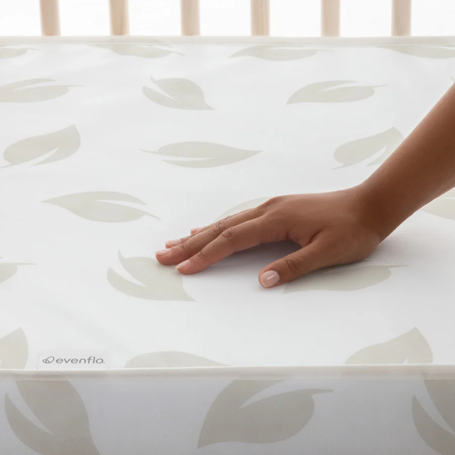 The Evenflo® Green&Gentle™ Sustainable Crib Mattress brings Evenflo’s high-quality, innovative touch to bedtime! Unlike foam mattresses, the Green&Gentle™ mattress is made from approximately 250 post-consumer recycled plastic bottles, to help your child grow up in a greener world. EcoFibril™ materials in the mattress core that are also VOC free, allow for better air flow through the mattress, to help create a cooler, more comfortable sleep environment for your child.